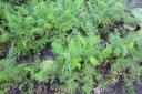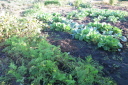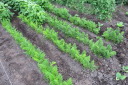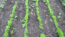 | 早朝は、久々の天候であった。ただ、札幌市方向はどんよりとした雲行き.余った種を肥料替わりにまいたものもすくすくと成長。 秋野菜の白菜、大根、キャベツは、かろうじて根がついた。枝豆はあと1週間程度、ニンジンも間引きしながら食卓へ。 |