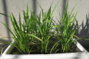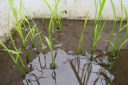 | 遊び心でバケツ稲づくりを始めました。この後、中ぼしの作業があります。順調に育つと思っていた稲は、原因は不明だが、いつまでたっても穂をつけることもなく9月中旬になった。仕方なく刈り取り、来年の課題となった。 | |||||||||