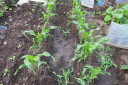 | 連日の天気で、畑も乾燥しています。週1回のペースで水やりを実施、苗はすべて元気で、枯れたものはありませんでした。 来週の初めに雨の予報がありますが、28日夕刻から雨がしとしと降り続けています。十分な水分補給がでるくとを期待したいですね。 |