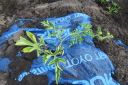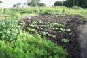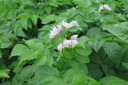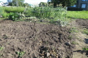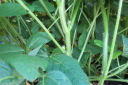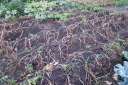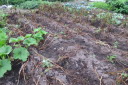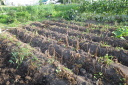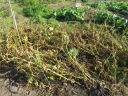| 8月27日長雨の中をぬってジャガイモをすべて収穫(数時間干して収穫)7月末に自宅で苗を育ていたが、やっと畑に移した。 早く作業と思っていたが、台風、長雨で伸びのびとなって2週間ほど遅れました。おかげで成長しすぎで枯れるものもあった。 |