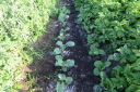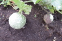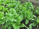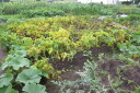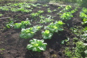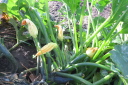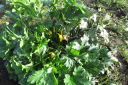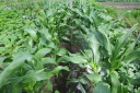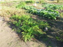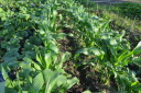 | 8月27日菜園に移植した野菜の35日目の成長ぶり。 移植の他に今年購入し残った種を、緑肥にとバラマキした野菜も、順調に育ち、台風の影響で高騰している野菜の代わりとして、食することにした。バラマキのため密集しているので間引きして、それを食卓にあげた。 春からの野菜はニンジン、黒豆、ズッキーニ、今日もズッキーニを収穫したが、菜園に行くのが1週間後とあって巨大化していた。 |