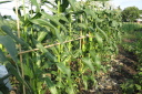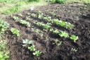 | 今日は、朝から快晴、気温は低め、じゃがいもにばいどをかけ、カボチャのビニルを外しました。土地は、湿潤で良い土壌の状態です。 スナックえんどうに花が付き、ジャガイモにもつぼみがかすかにつきました。ニンジンの間引きを行い、菜園を後にしました。 |