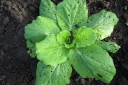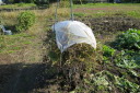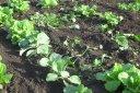 | ここ1週間天候が不順なことと、南風が強く菜園の土壌も水分を多く含んでいます。苗もののビニル囲いを外し草だけが成長したので草取りと土かきを行いました。土かきをすることによって、土中に酸素を与え表面の柔らかで乾燥をうながします。 種から育てた苗6種類を畑に移しました。白菜、天候が不順で、当方の菜園は昨年より4日から5日遅れているようです。 |