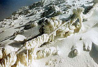 十勝岳の初冬(10月10日) 頂上はもう別世界、ガイドロープの凍結が山頂を拒む。
